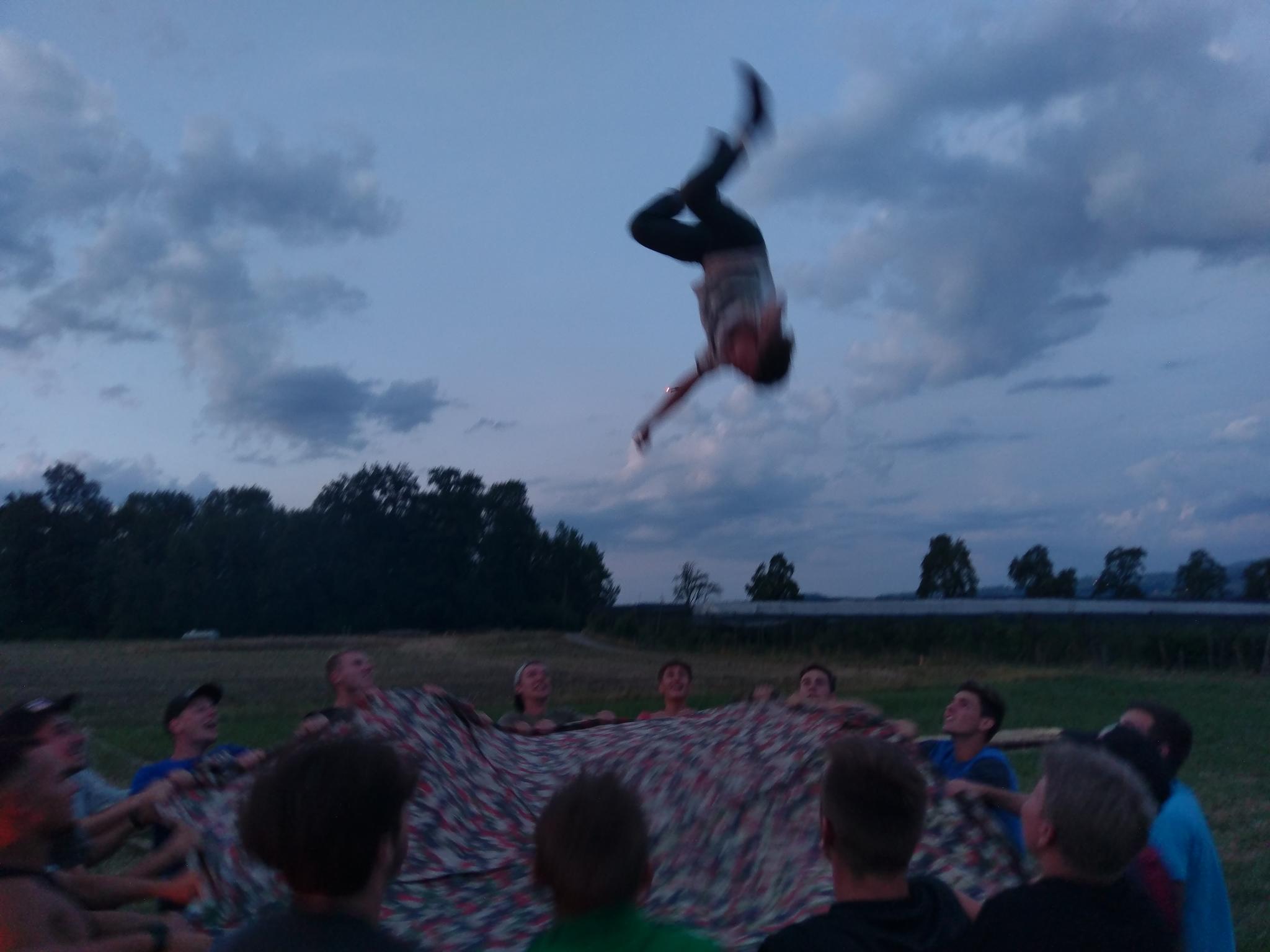 Am Samstag durften sich die Buben in der Badi Cham säubern für den Besuchstag. Es wurde gebadet, gekickt oder auch einfach ein bisschen geschlafen, um am Besuchstag wieder fit zu sein. Am Abend fand die Taufe unsere Neulinge im Lager statt. Diese bestand aus Mutproben und einer Feuertaufe. Wir sind überglücklich zahlreiche Neulinge bei uns zuhaben und hoffen auf weiteren Anstieg in den nächsten Jahren.