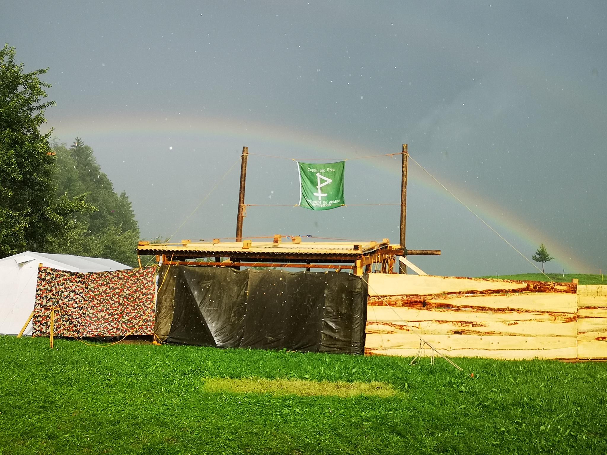 Das SoLa hat endlich gestartet! Am Donnerstag befüllten wir wieder unsere Mulde und anschliessend ging es ab nach Gossau. Während zwei Tagen bauten wir alles Wichtige wie zum Beispiel Ess- & Kochzelt, sanitäre Anlagen und auch die Leiterbase 😉 für die kommenden zwei Wochen auf.