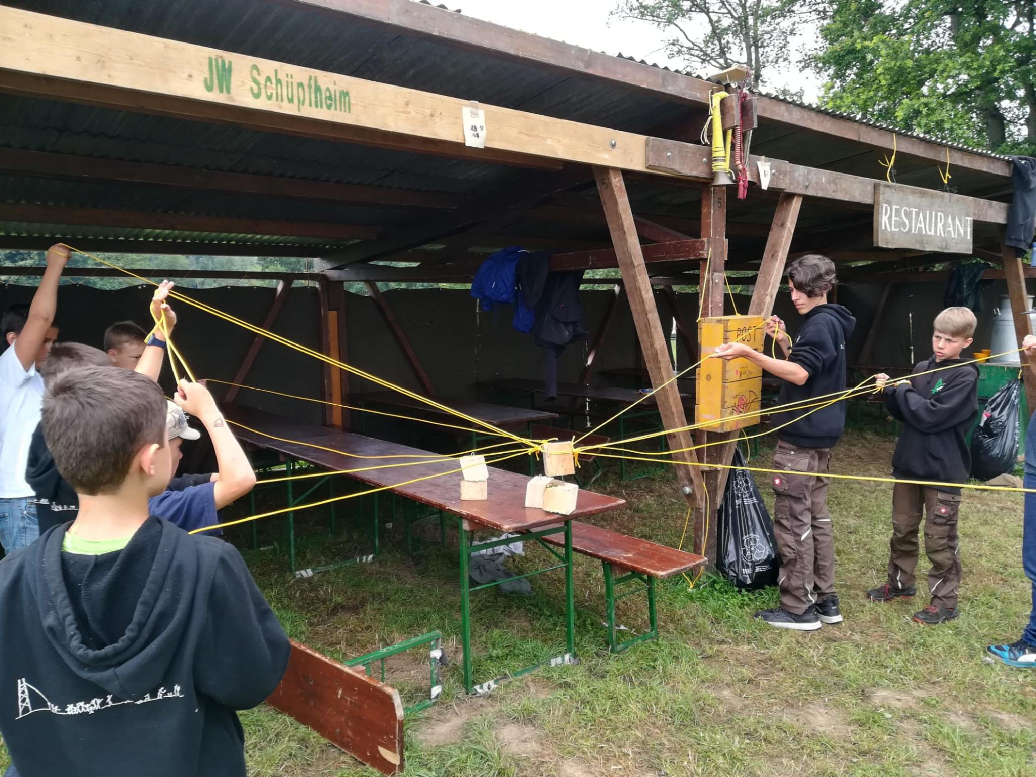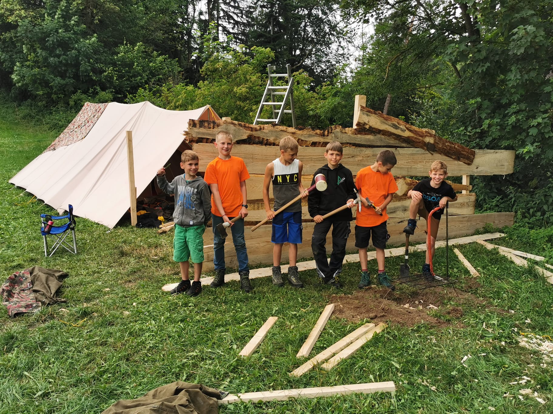 Am Sonntagnachmittag war es wieder soweit! 35 Jungwächter kamen im Jungwachtlager an. Sie konnten kaum warten mit ihren Aufbauten anzufangen. Sehr schnell haben alle Gruppen ein Plätzchen gefunden und haben mit dem Zeltaufbau begonnen. Am Abend wurden alle mit einem sensationellen Spaghettiplausch verköstigt. Danach war schlafen im neuen Zuhause angesagt. Am Montag wurden die Jungwächter mit ihrem neuen Werkzeug vertraut gemacht um möglichst viele Unfälle vorzubeugen. Die gelernten Handhabungen wurden danach beim Aufbau von Vorbauten angewendet. Am Abend war noch das erste Gruppenspiel angesagt. Somit waren das die News aus dem Lager und bis bald.