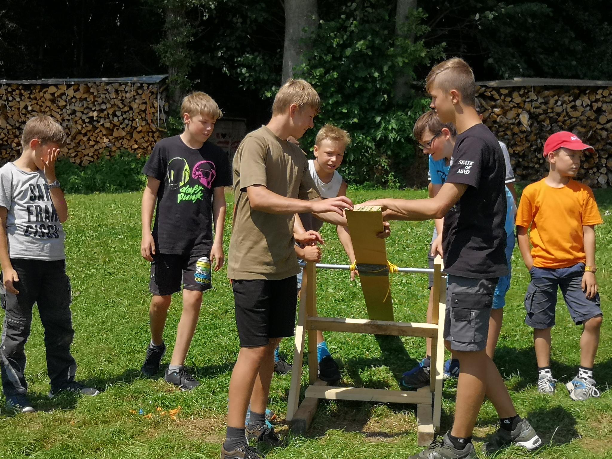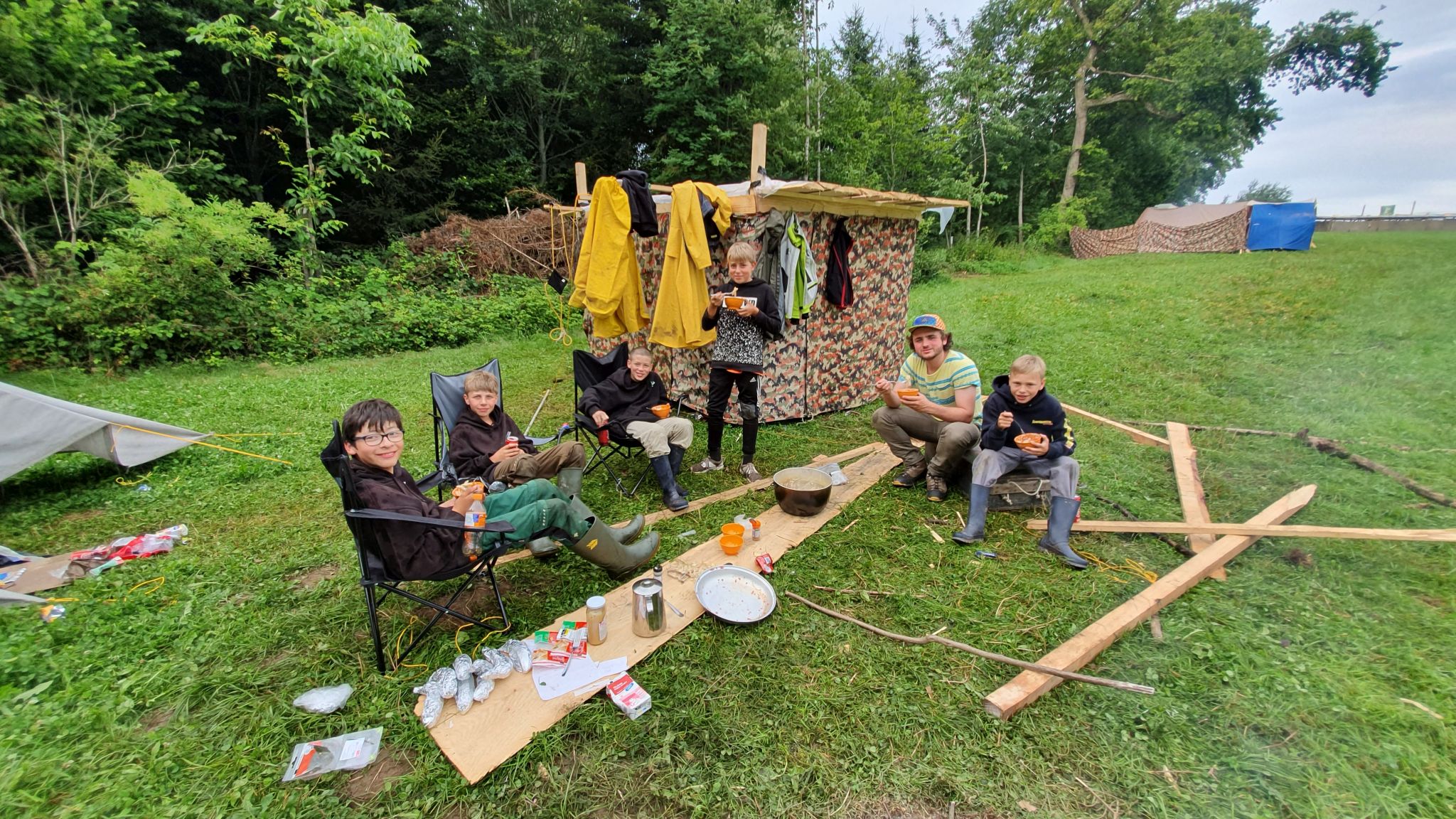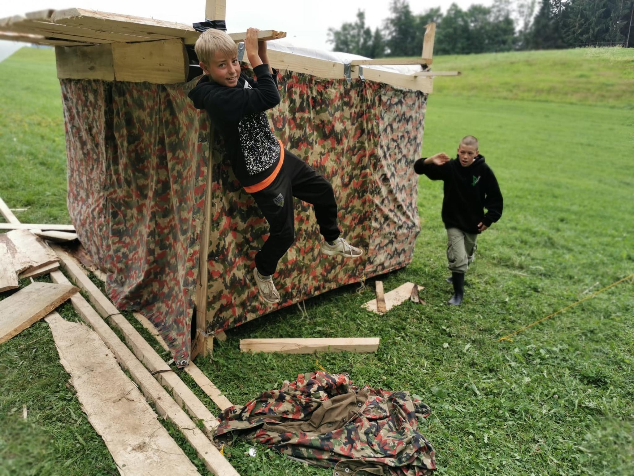 Der Tag 4 im diesjährigen Jungwachtlager war sehr abwechslungsreich. Die Buben wurden mit dem Bau von verschiedenen Tresoren beauftragt. Das Ziel war, dass wir einen Teil unserer Währung dort sicher lagern können. Durch verschiedene Kriterien wie Robustheit oder Grösse wurde einer von vier Tresoren zum Sieger erkoren. Am Nachmittag waren die Buben mit verschiedenen Geschicklichkeitsspielen beschäftigt, wie z.B. mit einem Fussball- Parcours. Am Abend wurden wir mit feiner Pizza vom selber gebauten Backofen verwöhnt. Als der Tag 5 anbrach, war es schon regnerisch. Doch dies haltet unsere Buben nicht davon ab sich durch Gipsblöcke zu meisseln, um gewisse Teile freizubekommen, die fürs Nachtgame benötigt wurden. Am Nachmittag war sehr schlechtes Wetter und die Buben haben sich im Zelt bei einem Jass oder Quartett vergnügt. Am Abend gab es Lasagne, bevor wir mit unserem Nachtgame starteten.