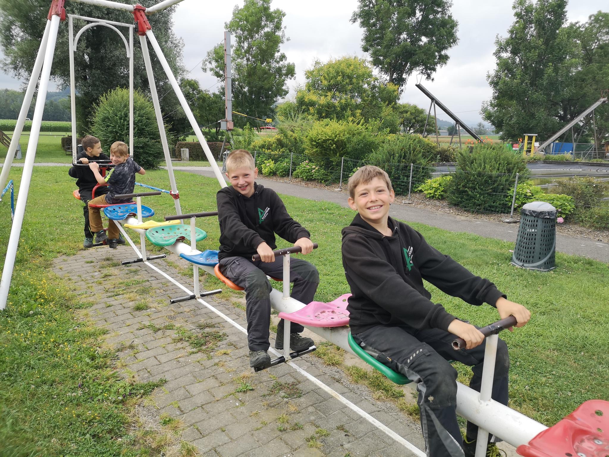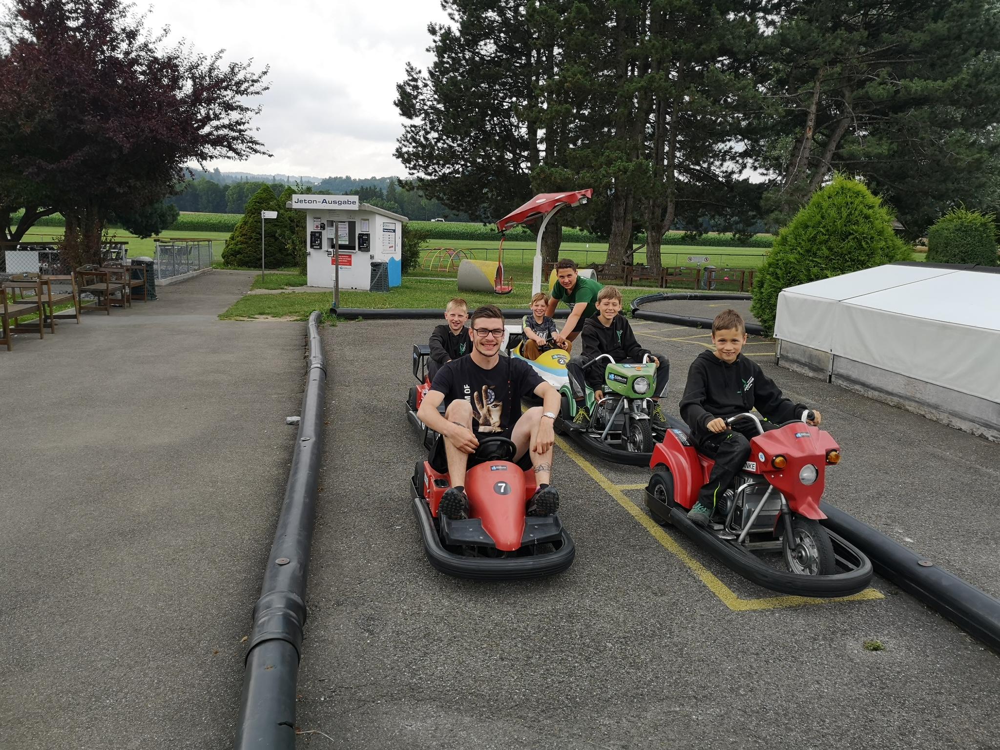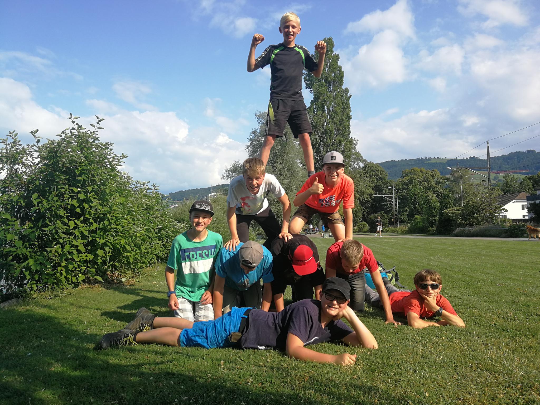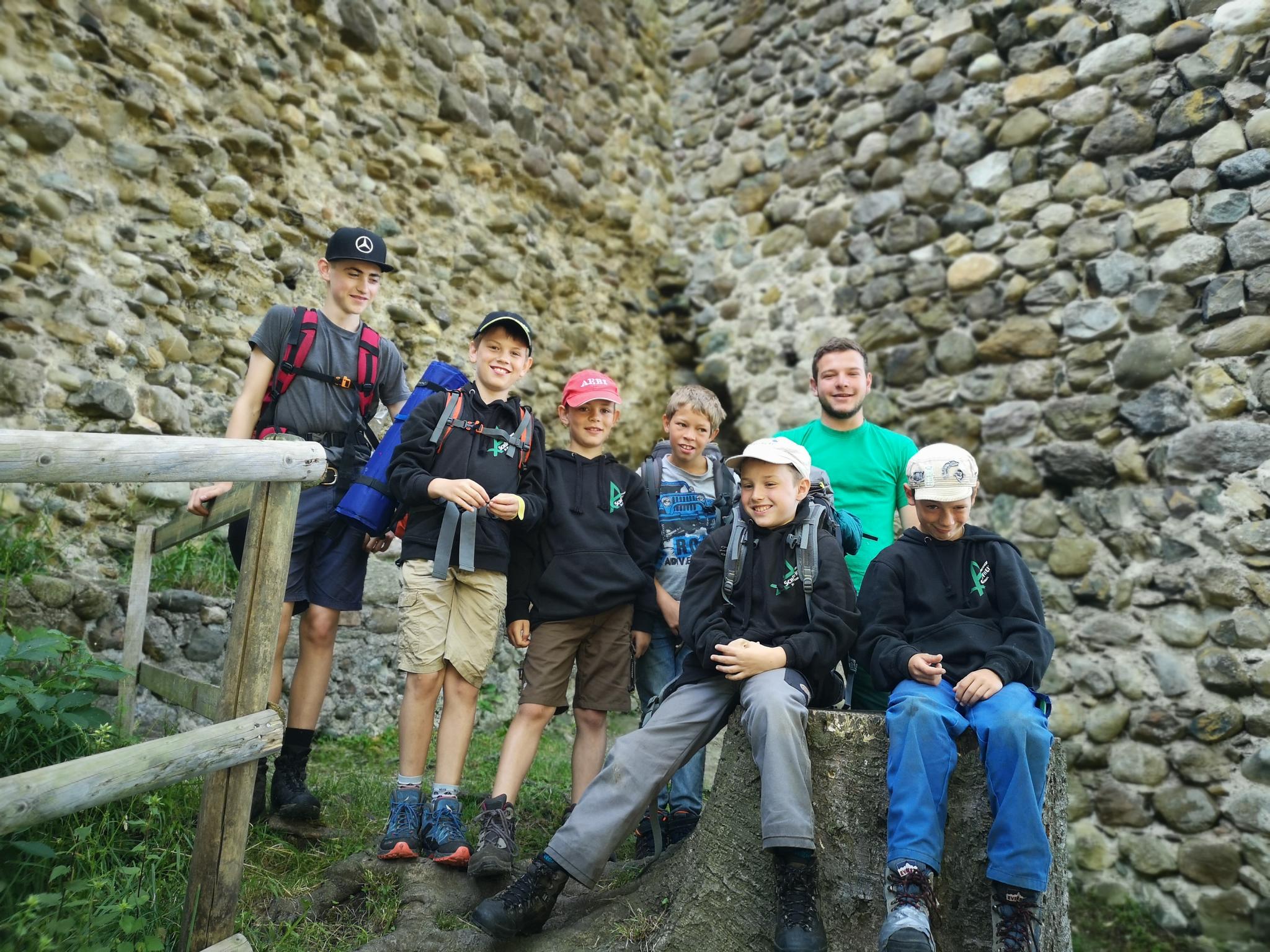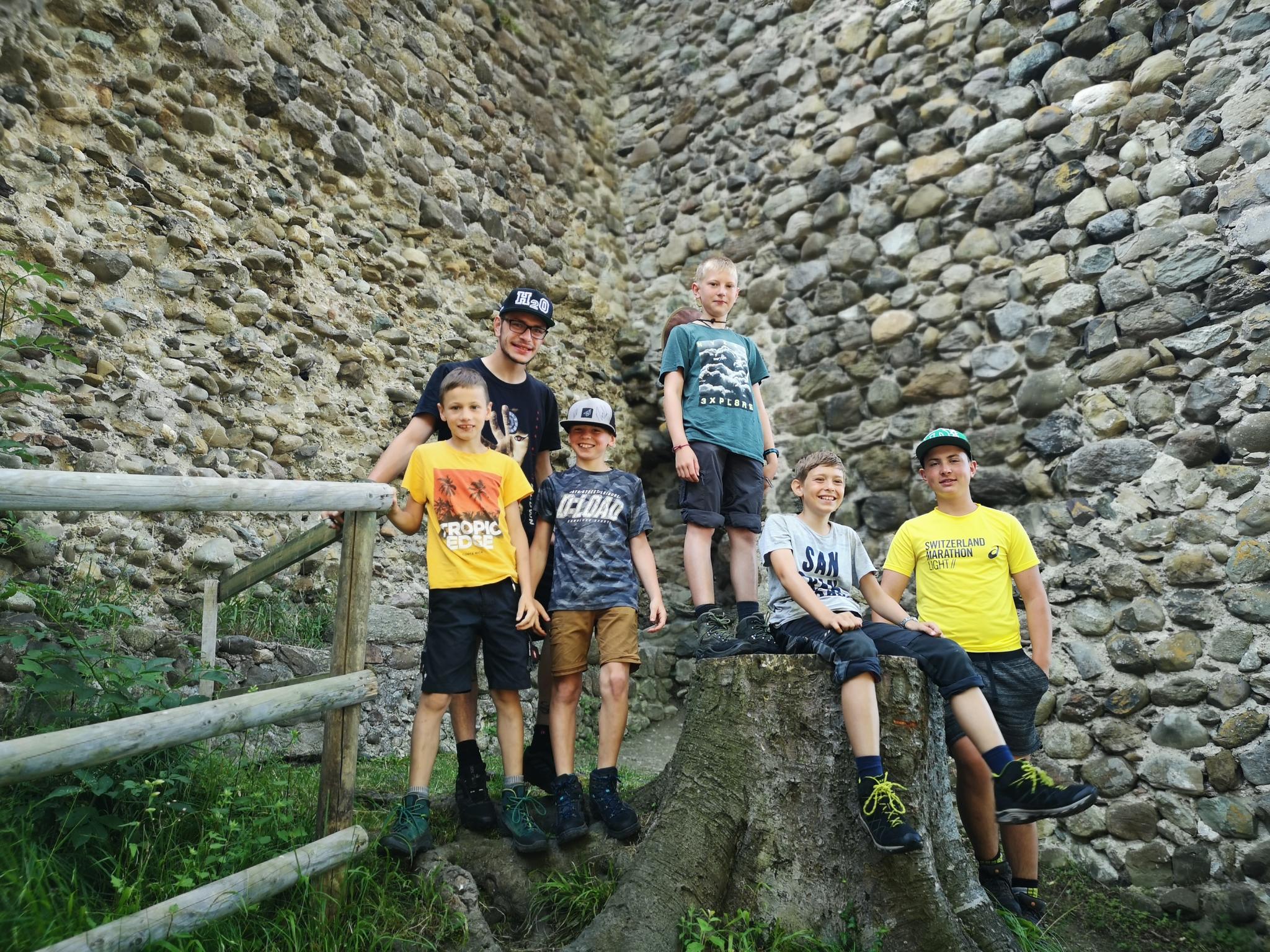 Am Tag 2 durften unsere Buben beim ersten Mottotag im Lager teilnehmen. Somit machten sie sich am Morgen in drei Gruppen an die Arbeit. Ihr Ziel war es bis zum Mittag einen Wagen, mit den zur verfügung gestellten Materialen, zu bauen und fahrtüchtig zumachen. Danach gab es am Nachmittag verschieden Rennen und Herausforderungen um den besten, schönsten und kreativsten zu wählen. Ausgeschlafen und gut gelaunt gingen wir am Tag 3 auf unsere einmalige Wanderung in und um Gossau. Durch hartes Kämpfen am Berg wurden wir mit einer Burgruine am Spitz überrascht und konnten uns dort verpflegen. Am Nachmittag, mit zunehmender Müdigkeit und Hitze waren alle sehr darüber erfreut als wir uns eine Glace „krömeln“ konnten. Nach strenger Wanderung gab es noch ein Gruppenkaffe am Abend.