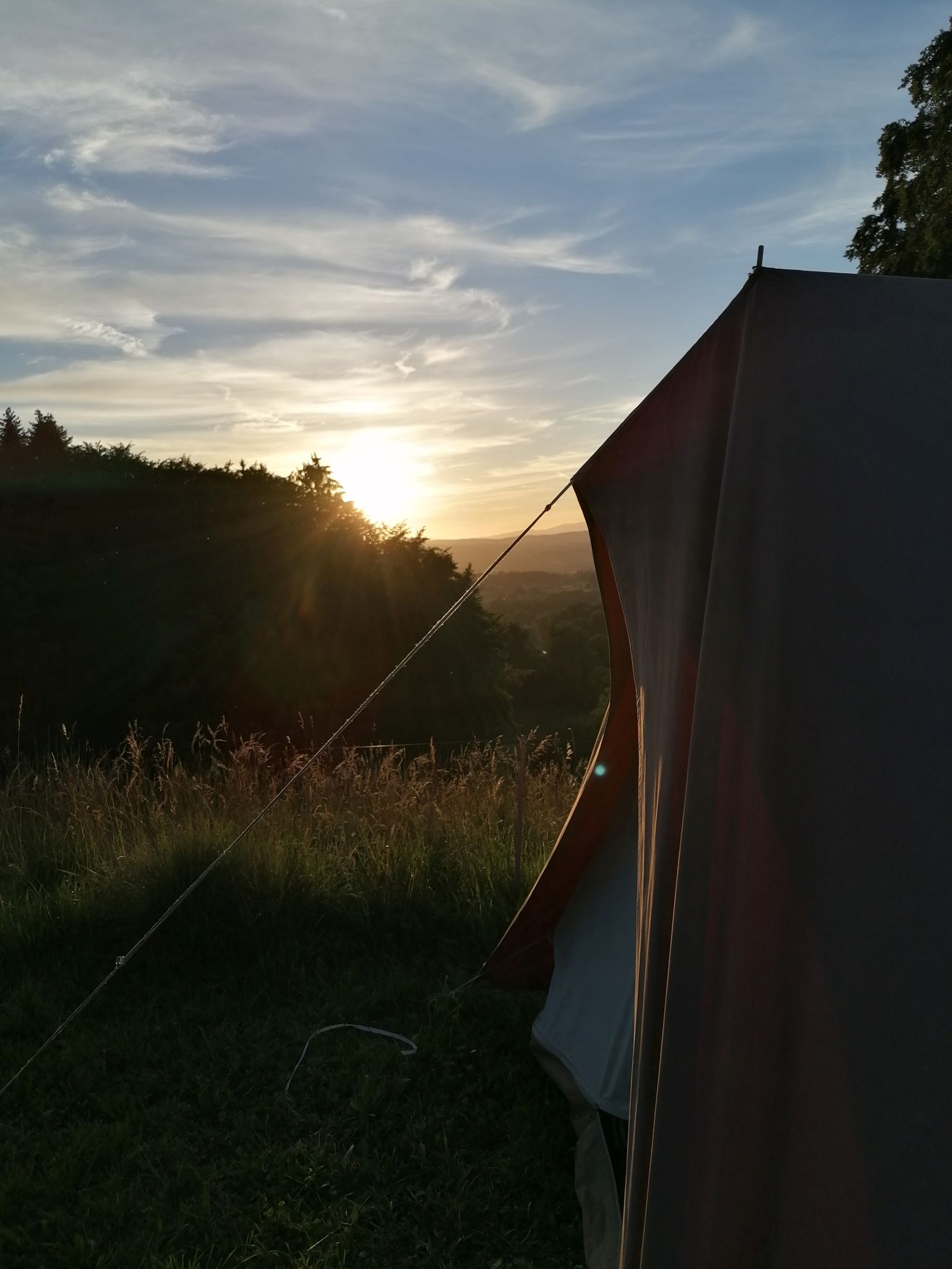 Nach der ersten Nacht im Zelt wurden die Jungwächter am zweiten Tag im Aufbau der Vorbauten gefordert. Langsam aber sicher verwandelt sich unsere grüne, saftige Wiese zu einem kleinen temporären Lagerdorf mit den unterschiedlichsten Vorbauten und Einrichtungen. Am Abend durften die Jungwächter auch schon den ersten Lagersport – Block erleben mit der Rettung vom „Sternen – Mammut“. Für diesen gelungenen ersten Tag wurden wir mit einem schönen Sonnenuntergang belohnt.