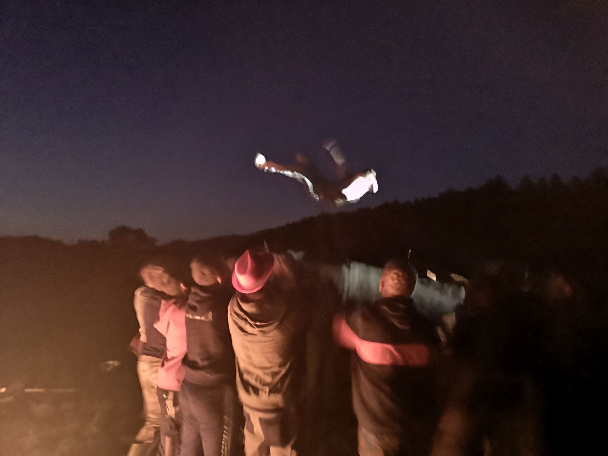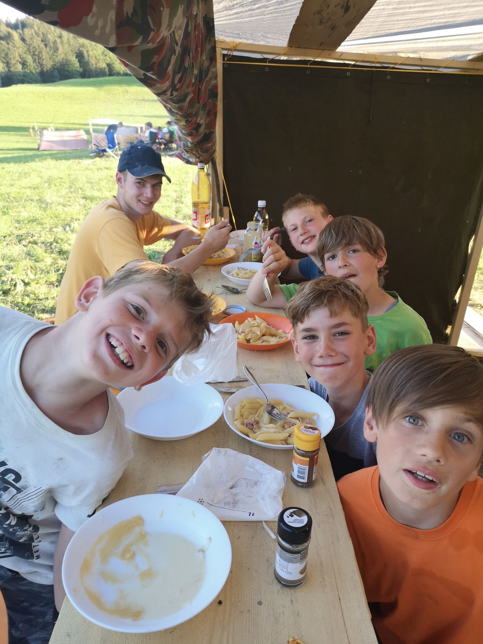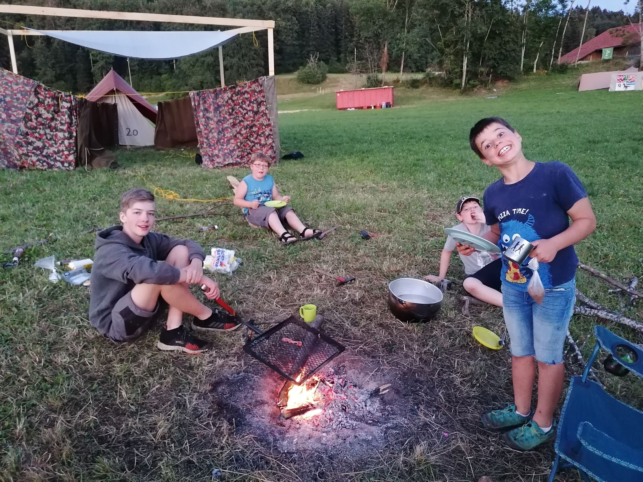 Heute war wieder ein ausgelassener Mototag mit viel Sportlichen-Aktivitäten. Am Morgen wurden in verschiedenen Gruppen Senften gebaut um unsere Steinzeit Häuptlingen auf Händen zu tragen. Am Nachmittag war frei für viel ver. Spiel und Spass Aktivitäten. Der Abend wurde durch einen Lagerüberfall der Salzräuber eingeläutet. Die Jungwächter mussten das gestohlene Salz wieder über dem Feuer gewinnen und wurden belohnt durch unsere Währung. Durch den Tag konnten die Jungwächter auch an unserem Muldenkiosk mit Währung verschiedene Lebensmittel für zwischendurch beziehen.